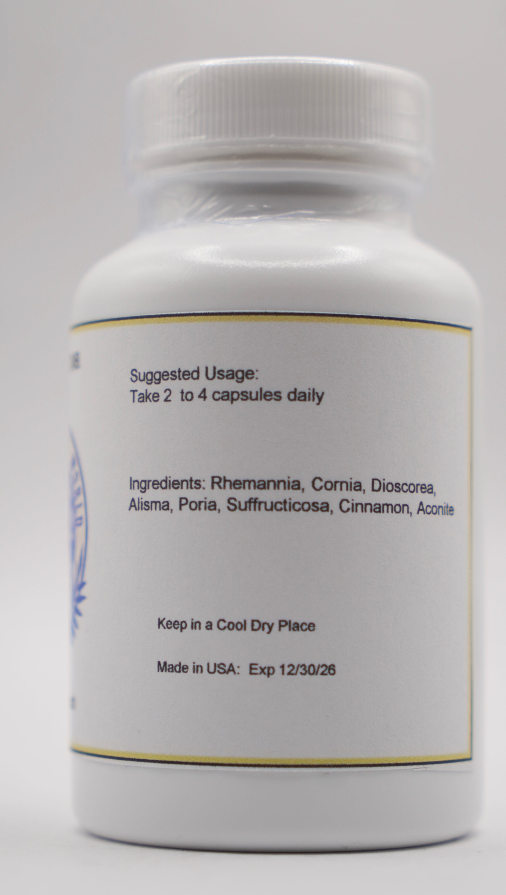 Ingredients: Rhemannia, Cornia, Dioscorea, Alisma, Poria, Suffructicosa, Cinnamon, Aconite.
